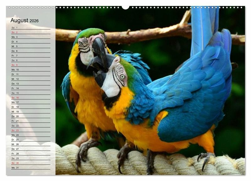Sie sind klug und wunderschön gefärbt. Papageien wie die Aras leuchten in den schönsten Farben und es ist eine Freude sie zu betrachten. Sie kommen aus Süd- und Mittelamerika und sind leider auch eine gefährdete Tierart und es wäre äußerst dramatisch, wenn man diese Schönheiten aussterben lassen würde. Ein schöner Planer für die gesamte Familie.