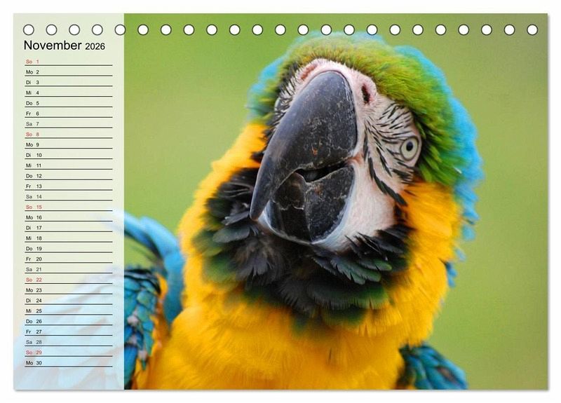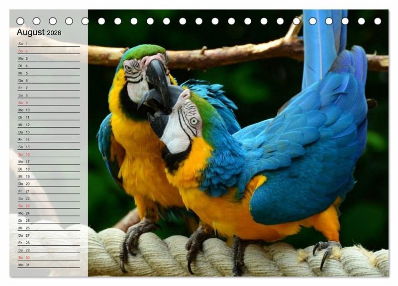 Sie sind klug und wunderschön gefärbt. Papageien wie die Aras leuchten in den schönsten Farben und es ist eine Freude sie zu betrachten. Sie kommen aus Süd- und Mittelamerika und sind leider auch eine gefährdete Tierart und es wäre äußerst dramatisch, wenn man diese Schönheiten aussterben lassen würde. Ein schöner Planer für die gesamte Familie.