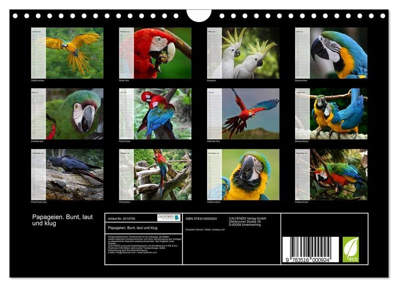 QUALITÄT - Hochwertiger Fotokalender mit 12 wunderschönen Motiven auf lichtbeständigem Bilderdruckpapier, robuste Spiralbindung mit Aufhängebügel.NACHHALTIG - deutliche Abfallreduzierung durch bedarfsgerechte Einzelstückfertigung, umweltfreundliches FSC-zertifiziertes Papier, Produktion in Deutschland, klimabewusste Logistik.PERFEKTES GESCHENK - Kalender für Freunde und Familie, für Kinder und Erwachsene, jung und alt, zu Weihnachten, Geburtstag oder zwischendurch.VIELFALT - Bildkalender in verschiedenen Formaten, z.B. DIN A5, DIN A4, DIN A3 sowie DIN A2. Ob Naturmotiv, Gemälde oder Fotos, ideal für ein persönliches Wohlfühlambiente.Aras und Kakadus sind intelligente Schönheiten im prächtigen Federkleid von Autor(in): Elisabeth Stanzer