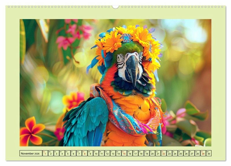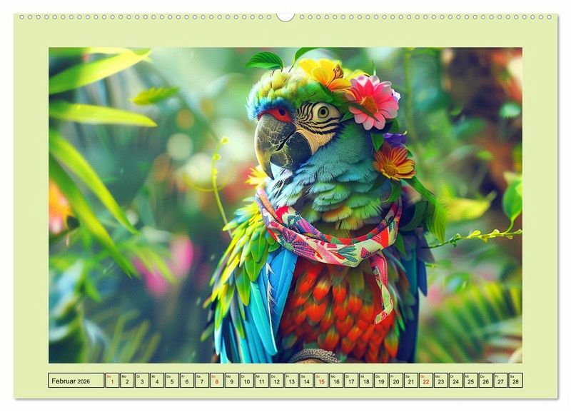 Willkommen in der schrillen Welt der Papageien, wo farbenprächtige Federn und High Fashion aufeinandertreffen! Jeder Monat präsentiert einen bunten Papagei, der mit seinem exotischen Flair und dem unverwechselbaren Stil die Laufstege der Natur erobert. Die Bilder wurden mit Hilfe künstlicher Intelligenz erstellt, um die Fantasie und Kreativität dieser gefiederten Models zum Leben zu erwecken.