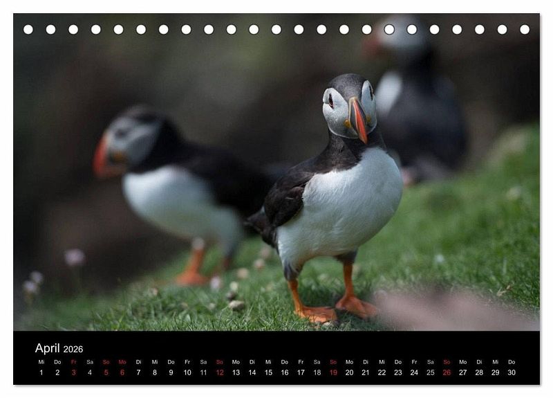 Der Kalender zeigt (inkl. Titelblatt) 13 ausgesuchte Fotos der beliebten Papageientaucher in ihrem natürlichen Umfeld auf den Shetlands.