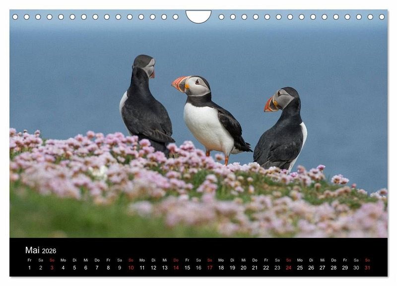Der Kalender zeigt (inkl. Titelblatt) 13 ausgesuchte Fotos der beliebten Papageientaucher in ihrem natürlichen Umfeld auf den Shetlands.