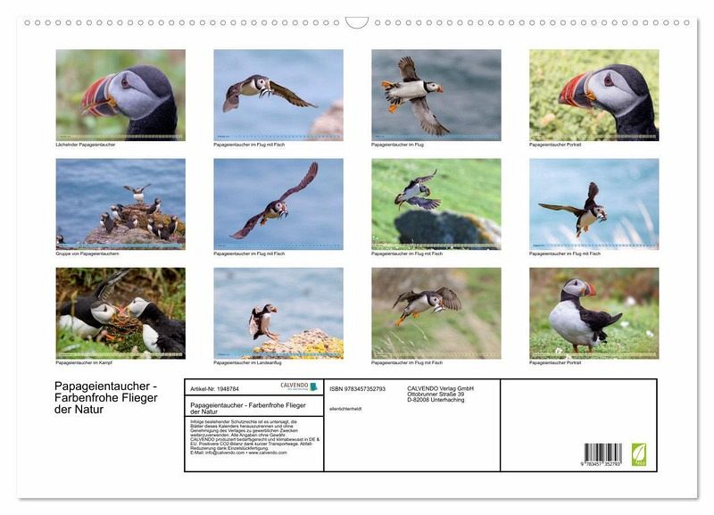 Entdecken Sie die faszinierende Welt der Papageientaucher mit unserem exklusiven Kalender! Jedes Bild fängt die Schönheit und den Charakter dieser einzigartigen Vögel ein - von beeindruckenden Portraits bis hin zu dynamischen Flugbildern. Lassen Sie sich von den lebendigen Farben und der Anmut dieser Tiere verzaubern, während sie durch die Lüfte gleiten oder in ihren natürlichen Lebensräumen posieren. Ideal für Naturliebhaber und Fotografie-Enthusiasten, bringt dieser Kalender einen Hauch von Wildnis in Ihr Zuhause. Genießen Sie jeden Monat ein neues Meisterwerk. Holen Sie sich jetzt Ihren Kalender und lassen Sie sich inspirieren!