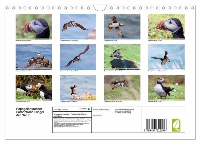 QUALITÄT - Hochwertiger Fotokalender mit 12 wunderschönen Motiven auf lichtbeständigem Bilderdruckpapier, robuste Spiralbindung mit Aufhängebügel.NACHHALTIG - deutliche Abfallreduzierung durch bedarfsgerechte Einzelstückfertigung, umweltfreundliches FSC-zertifiziertes Papier, Produktion in Deutschland, klimabewusste Logistik.PERFEKTES GESCHENK - Kalender für Freunde und Familie, für Kinder und Erwachsene, jung und alt, zu Weihnachten, Geburtstag oder zwischendurch.VIELFALT - Bildkalender in verschiedenen Formaten, z.B. DIN A5, DIN A4, DIN A3 sowie DIN A2. Ob Naturmotiv, Gemälde oder Fotos, ideal für ein persönliches Wohlfühlambiente.Papageientaucher - Farbenfrohe Flieger der Natur von Autor(in): ellenlichtenheldt