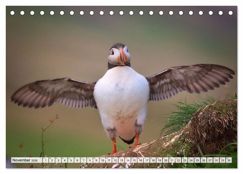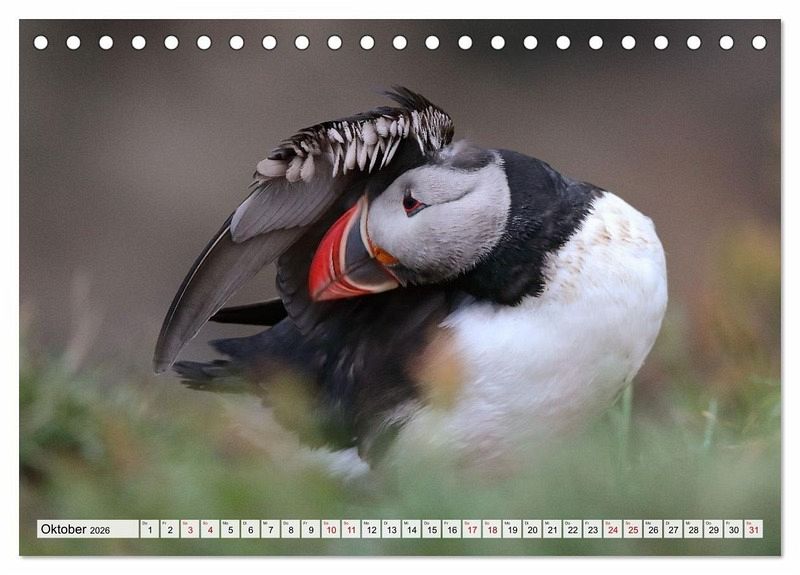 Mit ihren bunten Schnäbeln, neugierigen Blicken und watschelnden Bewegungen gehören Papageitaucher zu den liebenswertesten Bewohnern der nordischen Küsten. Dieser Kalender zeigt eindrucksvolle Momente aus ihrem Leben in Island - vom erfolgreichen Fischfang über ausgiebige Gefiederpflege bis hin zu ruhigen Szenen im Licht der Mitternachtssonne. Die Bilder zeigen das Leben dieser faszinierenden Vögel inmitten rauer Felsen, windgepeitschter Landschaften und endloser Weite. Ein liebevoller Einblick in die Welt der Papageitaucher - wild, zart und voller Charakter.