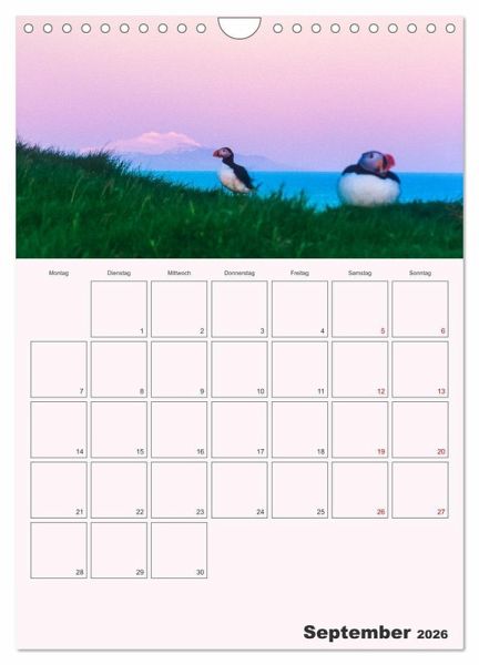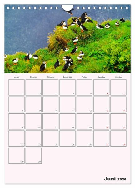 Der Monatsplaner "Papageitaucher" der Fotografin und Autorin Carola Vahldiek zeigt zwölf wundervolle Fotografien dieser niedlichen, lustigen und sehr sympathischen Vögel. Die Fotos wurden an verschiedenen Orten auf Island aufgenommen.