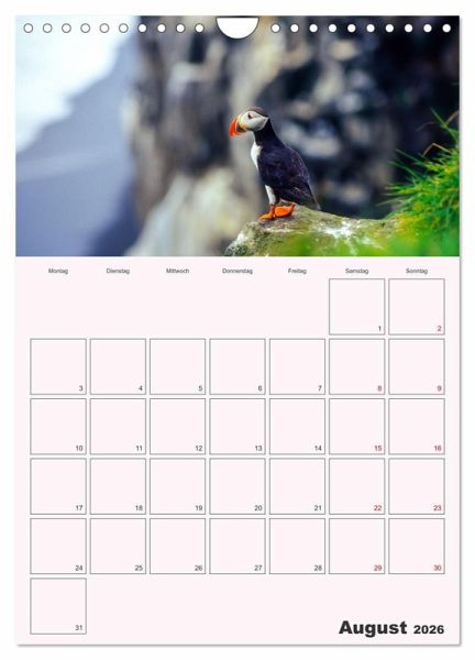 QUALITÄT - Hochwertiger Fotokalender mit 12 wunderschönen Motiven auf lichtbeständigem Bilderdruckpapier, robuste Spiralbindung mit Aufhängebügel.NACHHALTIG - deutliche Abfallreduzierung durch bedarfsgerechte Einzelstückfertigung, umweltfreundliches FSC-zertifiziertes Papier, Produktion in Deutschland, klimabewusste Logistik.PERFEKTES GESCHENK - Kalender für Freunde und Familie, für Kinder und Erwachsene, jung und alt, zu Weihnachten, Geburtstag oder zwischendurch.VIELFALT - Bildkalender in verschiedenen Formaten, z.B. DIN A5, DIN A4, DIN A3 sowie DIN A2. Ob Naturmotiv, Gemälde oder Fotos, ideal für ein persönliches Wohlfühlambiente.Planer mit wunderschönen Bildern der lustigen Papageientaucher von Autor(in): Carola Vahldiek