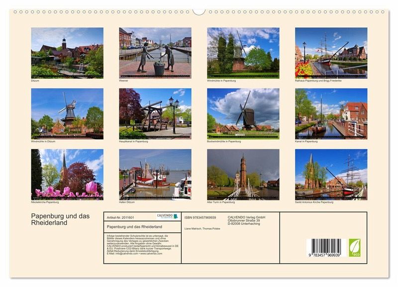 Papenburg im Nordwesten Deutschlands ist aus einer Fehnkolonie hervorgegangen und war ein Vorreiter der Moorkolonialisierung. Viele Kanäle prägen auch heute das malerische Stadtbild. Besuchen Sie mit diesem Kalender neben Papenburg auch die schönen Orte Weener und Ditzum im Rheiderland.