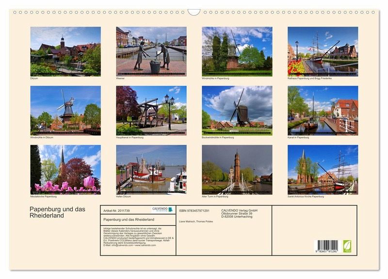 Papenburg im Nordwesten Deutschlands ist aus einer Fehnkolonie hervorgegangen und war ein Vorreiter der Moorkolonialisierung. Viele Kanäle prägen auch heute das malerische Stadtbild. Besuchen Sie mit diesem Kalender neben Papenburg auch die schönen Orte Weener und Ditzum im Rheiderland.