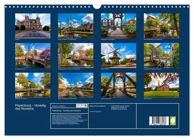 QUALITÄT - Hochwertiger Fotokalender mit 12 wunderschönen Motiven auf lichtbeständigem Bilderdruckpapier, robuste Spiralbindung mit Aufhängebügel.NACHHALTIG - deutliche Abfallreduzierung durch bedarfsgerechte Einzelstückfertigung, umweltfreundliches FSC-zertifiziertes Papier, Produktion in Deutschland, klimabewusste Logistik.PERFEKTES GESCHENK - Kalender für Freunde und Familie, für Kinder und Erwachsene, jung und alt, zu Weihnachten, Geburtstag oder zwischendurch.VIELFALT - Bildkalender in verschiedenen Formaten, z.B. DIN A5, DIN A4, DIN A3 sowie DIN A2. Ob Naturmotiv, Gemälde oder Fotos, ideal für ein persönliches Wohlfühlambiente.Zauberhaftes Papenburg mit seinen Kanälen und Zugbrücken von Autor(in): Andrea Dreegmeyer