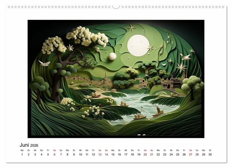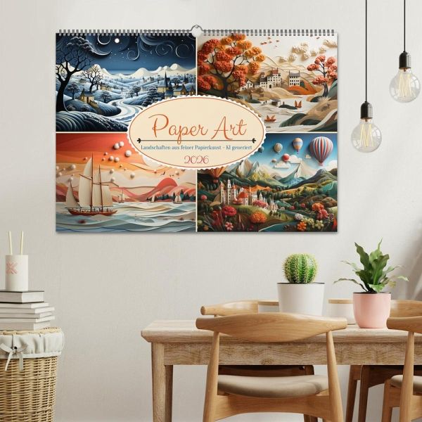 QUALITÄT - Hochwertiger Fotokalender mit 12 wunderschönen Motiven auf lichtbeständigem Bilderdruckpapier, robuste Spiralbindung mit Aufhängebügel.NACHHALTIG - deutliche Abfallreduzierung durch bedarfsgerechte Einzelstückfertigung, umweltfreundliches FSC-zertifiziertes Papier, Produktion in Deutschland, klimabewusste Logistik.PERFEKTES GESCHENK - Kalender für Freunde und Familie, für Kinder und Erwachsene, jung und alt, zu Weihnachten, Geburtstag oder zwischendurch.VIELFALT - Bildkalender in verschiedenen Formaten, z.B. DIN A5, DIN A4, DIN A3 sowie DIN A2. Ob Naturmotiv, Gemälde oder Fotos, ideal für ein persönliches Wohlfühlambiente.Landschaften aus origineller Papierkunst - KI generiert von Autor(in): Catill