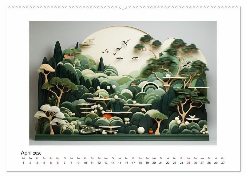 Wie wäre es mit einem Kalender, der dich jeden Monat mit einem neuen Bild von einer wunderschönen Landschaft aus Papierkunst überrascht? Dieser Kalender ist nicht nur ein praktischer Begleiter für das ganze Jahr, sondern auch ein echter Hingucker an deiner Wand. Die Bilder sind von einer künstlichen Intelligenz generiert, die sich von der Kunst des Papierfaltens inspirieren lässt. Jede Landschaft ist einzigartig und zeigt die Vielfalt und Schönheit der Natur in einer kreativen und originellen Weise. Ob Berge, Wälder, Seen, Herbst und Sommer - dieser Kalender bringt dir die Welt nach Hause.