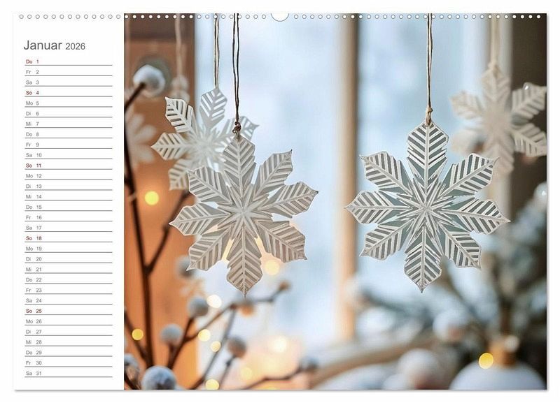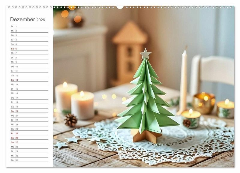 Papierträume zeigt eine poetische Reise durch die Welt der Papierkunst - lichtdurchflutet, filigran und inspirierend. Die Bilder sind künstlerisch KI-generiert und laden zum Staunen ein, ohne selbst Bastelanleitungen zu enthalten. Statt praktischer Anleitungen erwarten Sie atmosphärische Bildwelten, die Papier in all seiner Schönheit als kreative Kunstform präsentieren - von zarten Laternen über Origami bis zu fantasievollen Dekorationen. Ein Kalender für alle, die Leichtigkeit, Ästhetik und die Magie des Besonderen lieben.