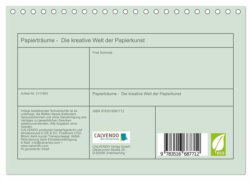 QUALITÄT - Hochwertiger Fotokalender mit 12 wunderschönen Motiven auf lichtbeständigem Bilderdruckpapier, robuste Spiralbindung.NACHHALTIG - deutliche Abfallreduzierung durch bedarfsgerechte Einzelstückfertigung, umweltfreundliches FSC-zertifiziertes Papier, Produktion in Deutschland, klimabewusste Logistik.PERFEKTES GESCHENK - Kalender für Freunde und Familie, für Kinder und Erwachsene, jung und alt, zu Weihnachten, Geburtstag oder zwischendurch.VIELFALT - Bildkalender in verschiedenen Formaten, z.B. DIN A5, DIN A4, DIN A3 sowie DIN A2. Ob Naturmotiv, Gemälde oder Fotos, ideal für ein persönliches Wohlfühlambiente.Zarte Kunstwerke aus Papier von Autor(in): Michaela Spreider