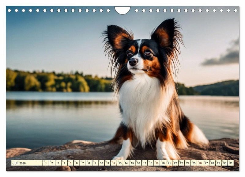 Bei einem Körpergewicht von maximal fünf Kilogramm ist er meist leichter als eine Katze. Sein runder Kopf mit den großen, ausdrucksstarken Augen entspricht dem Kindchenschema, wie es für viele Begleithunde typisch ist. Er ist ein intelligenter, verspielter und fröhlicher Begleithund. Der Papillon hat kaum Jagdtrieb und lässt sich leicht erziehen. So ist Freilauf bei ihm relativ unproblematisch. Die zauberhafte Kleinrasse wurde mithilfe der KI in Szene gesetzt.