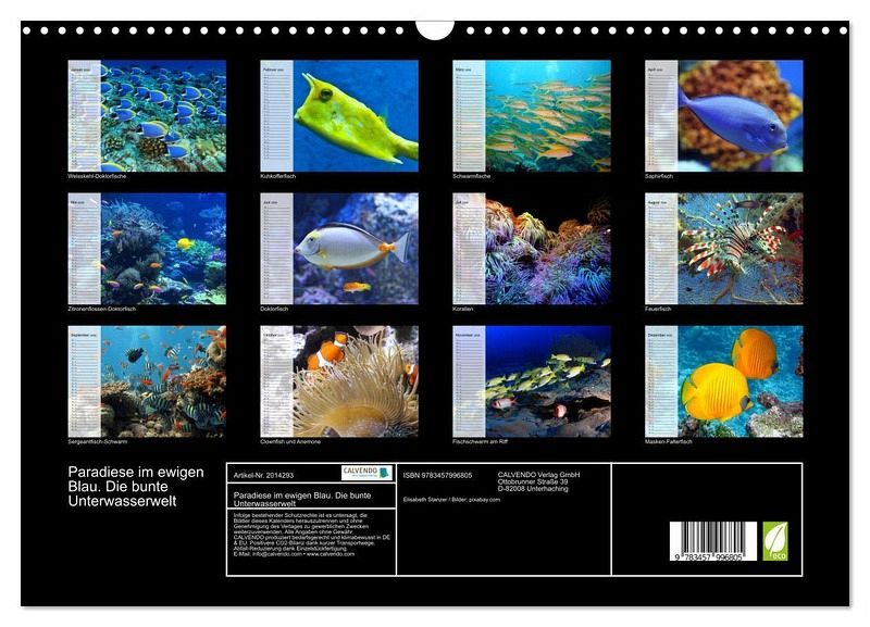 QUALITÄT - Hochwertiger Fotokalender mit 12 wunderschönen Motiven auf lichtbeständigem Bilderdruckpapier, robuste Spiralbindung mit Aufhängebügel.NACHHALTIG - deutliche Abfallreduzierung durch bedarfsgerechte Einzelstückfertigung, umweltfreundliches FSC-zertifiziertes Papier, Produktion in Deutschland, klimabewusste Logistik.PERFEKTES GESCHENK - Kalender für Freunde und Familie, für Kinder und Erwachsene, jung und alt, zu Weihnachten, Geburtstag oder zwischendurch.VIELFALT - Bildkalender in verschiedenen Formaten, z.B. DIN A5, DIN A4, DIN A3 sowie DIN A2. Ob Naturmotiv, Gemälde oder Fotos, ideal für ein persönliches Wohlfühlambiente.Das bunte Treiben der schönen Lebewesen unter Wasser von Autor(in): Elisabeth Stanzer
