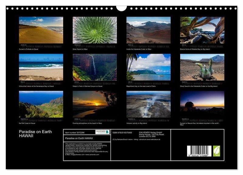 QUALITY - High-quality photo calendar with 12 beautiful images on light-resistant paper, robust spiral binding with hanger.SUSTAINABLE - Significant waste reduction due to print-on-demand production, environmentally friendly FSC-certified paper, produced in the UK, climate-conscious logistical processes.PERFECT GIFT - calendars for friends and family, for children, all ages and all occasions, from Christmas to birthdays and everything in between.LOTS OF CHOICE - Wall calendars in different sizes (DIN A4 and DIN A3), for any topic and personal taste, featuring photography, painting and illustrations.Atmospheric calendar with impressions from Hawaii, author: Barbara Busch