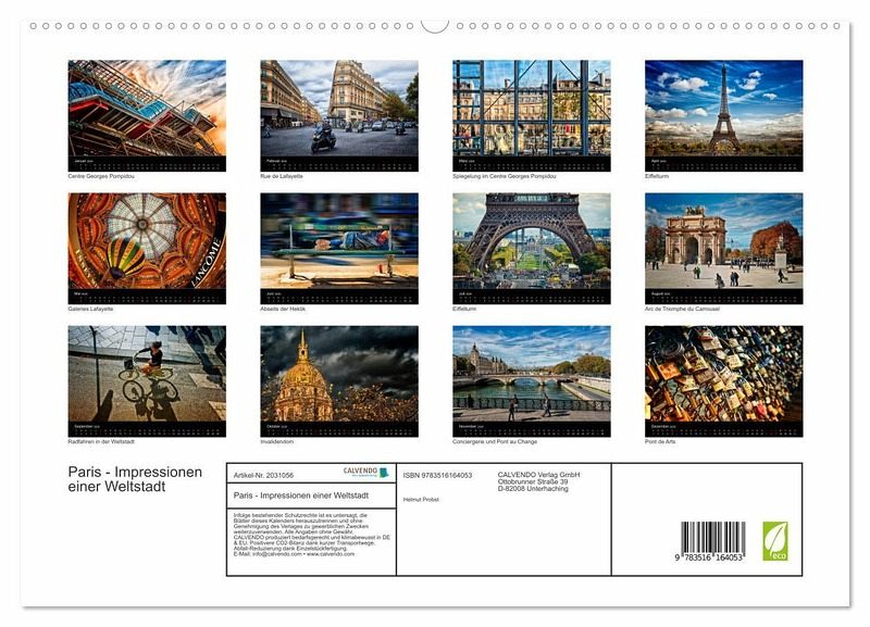 PREMIUM-LINIE - Brillanter Fotokalender mit 12 wunderschönen Motiven, Kunstdruck in Hochglanz in Museumsqualität.QUALITÄT - edle Materialien, stabile Rückwand mit 2 innovativen Einstecktaschen für eine optimale Präsentation an der Wand.NACHHALTIG - deutliche Abfallreduzierung durch bedarfsgerechte Einzelstückfertigung, umweltfreundliches FSC-zertifiziertes Papier, Produktion in Deutschland, klimabewusste Logistik.PERFEKTES GESCHENK - Kalender für Freunde und Familie, für Kinder und Erwachsene, jung und alt, zu Weihnachten, Geburtstag oder zwischendurch.Fotografische Impressionen der Weltstadt Paris von Autor(in): HP-Grafik