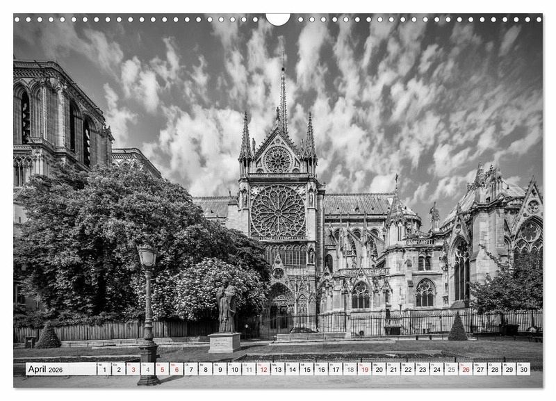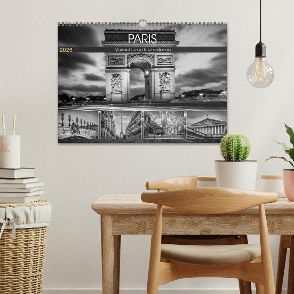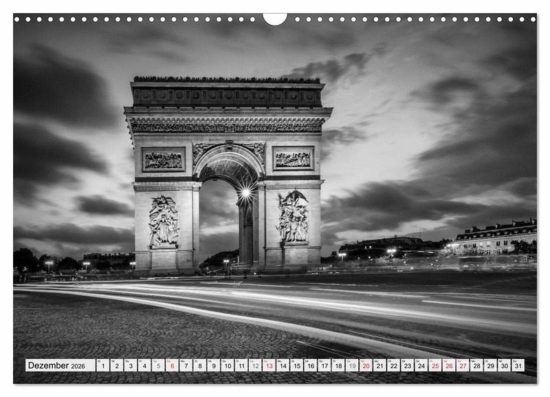 Unternehmen Sie eine Entdeckungstour durch Paris mit ihren vielen Attraktionen. Erleben Sie den Charme der Stadt, die monumentalen Bauten, das Ufer der Seine, erholsame Parkanlagen und typische Straßenszenen. 12 harmonische Schwarz-Weiß-Fotografien führen durch die malerische Metropole.