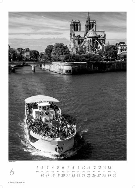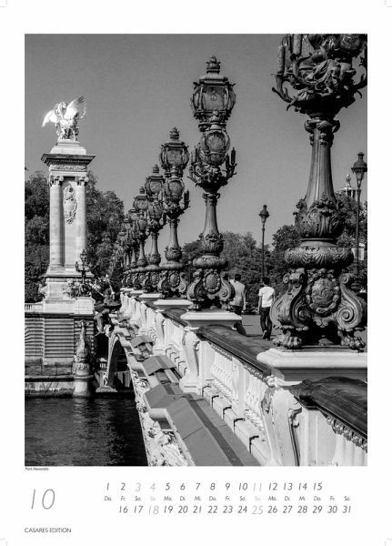 Der "Paris Schwarz-Weiß Kalender 2026" vereint zeitlose Eleganz mit der faszinierenden Atmosphäre der französischen Hauptstadt. Mit hochwertigen Schwarz-Weiß-Fotografien zeigt dieser Kalender ikonische Sehenswürdigkeiten, charmante Straßen und kunstvolle Motive von Paris. Perfekt für Kunstliebhaber, Reisetouristen oder jeden, der eine stilvolle und funktionale Wanddekoration sucht. Hergestellt aus hochwertigem Material, ist dieser Kalender ein Highlight in jedem Raum und ein großartiges Geschenk für Paris-Fans mit 12 faszinierenden grossformatigen Fotos, gedruckt auf schwerem 170g Papier, in Spitzenqualität. Auf der Rückseite des Kalenders befindet sich ein Motivinformationsblatt mit allen Motiven. Das Kalendarium ist sehr klar und übersichtlich. Gebunden ist der Kalender mit Spiralbindung und er ist mit einem stabilen Aufhänger versehen.