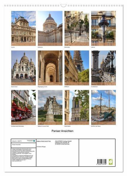 QUALITÄT - Hochwertiger Fotokalender mit 12 wunderschönen Motiven auf lichtbeständigem Bilderdruckpapier, robuste Spiralbindung mit Aufhängebügel.NACHHALTIG - deutliche Abfallreduzierung durch bedarfsgerechte Einzelstückfertigung, umweltfreundliches FSC-zertifiziertes Papier, Produktion in Deutschland, klimabewusste Logistik.PERFEKTES GESCHENK - Kalender für Freunde und Familie, für Kinder und Erwachsene, jung und alt, zu Weihnachten, Geburtstag oder zwischendurch.VIELFALT - Bildkalender in verschiedenen Formaten, z.B. DIN A5, DIN A4, DIN A3 sowie DIN A2. Ob Naturmotiv, Gemälde oder Fotos, ideal für ein persönliches Wohlfühlambiente.Pariser Ansichten - Eindrücke einer Stadt von Autor(in): Christine Wirges
