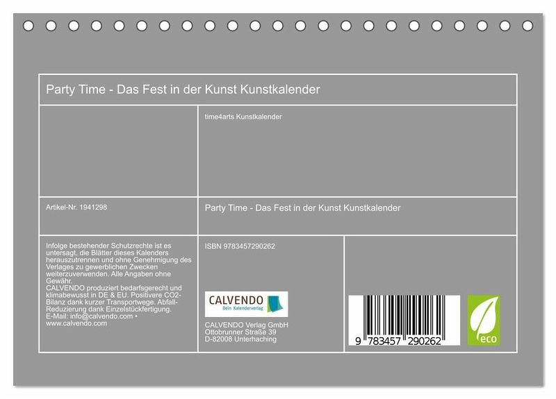 Von der Opulenz eines Götter-Banketts bis zur Schlichtheit einer ländlichen Feier. Exquisite Gemälde von Tizian, Peter Paul Rubens, Jan Steen oder Edouard Manet huldigen dem repräsentativen und sinnlichen Fest. Dieser Kunstkalender präsentiert Lebenslust in zwölf Bildern.