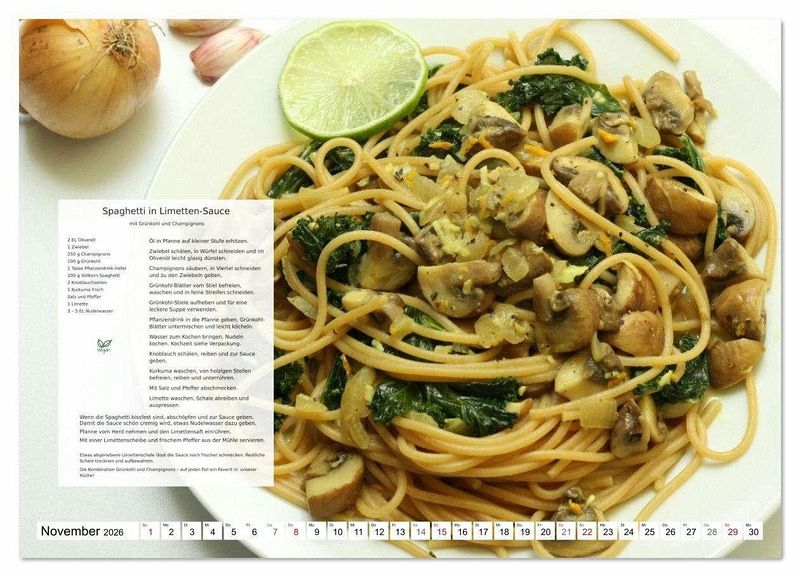 November: Spaghetti in Limetten-Sauce mit Grünkohl und Champignons