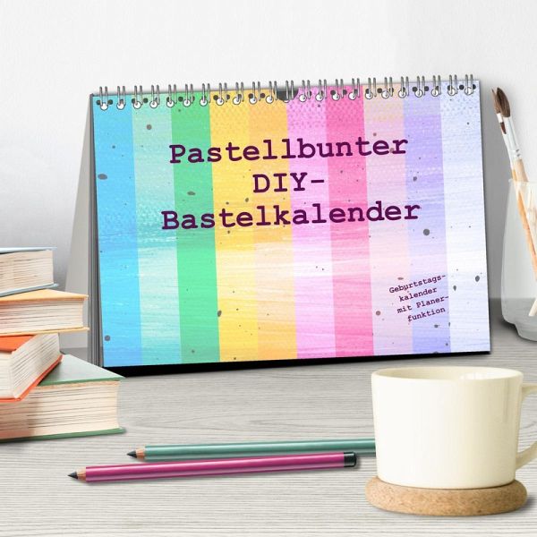 Mit diesem bunten Bastelkalender in Pastellfarben können Kinder und Erwachsene ihrer Kreativität freien Lauf lassen und ihren ganz persönlichen DIY-Kalender gestalten. Mit zwölf unterschiedlich vorgestalteten Kalenderblättern und einem Titelblatt bietet er zahlreiche Möglichkeiten, ihn zu einem tollen Wandkalender und Gute-Laune-Geschenk für Oma, Opa, Mama, Papa, Tante, Onkel, gute Freundin oder guten Freund zu machen. Ob zu Weihnachten, zum Geburtstag, zur Taufe oder Geburt, zu Muttertag oder Vatertag, ob gemeinsam im Kindergarten oder in der Schule oder allein gestaltet - der Kalender ist eine perfekte Geschenkidee für jeden Anlass. Fotos, Collagen, witzige Sprüche oder Zeichnungen - der Fantasie sind keine Grenzen gesetzt. Gestalten und verschenken Sie einen dekorativen, ganz persönlichen Kalender für die Küche, das Schlafzimmer, das Kinder- oder Arbeitszimmer!