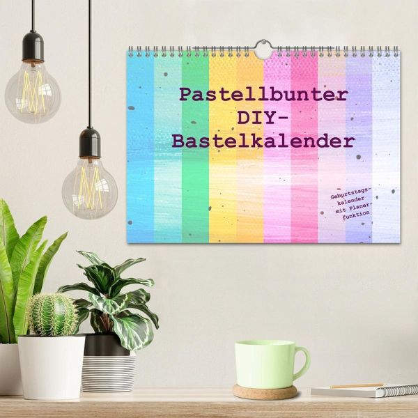 Mit diesem bunten Bastelkalender in Pastellfarben können Kinder und Erwachsene ihrer Kreativität freien Lauf lassen und ihren ganz persönlichen DIY-Kalender gestalten. Mit zwölf unterschiedlich vorgestalteten Kalenderblättern und einem Titelblatt bietet er zahlreiche Möglichkeiten, ihn zu einem tollen Wandkalender und Gute-Laune-Geschenk für Oma, Opa, Mama, Papa, Tante, Onkel, gute Freundin oder guten Freund zu machen. Ob zu Weihnachten, zum Geburtstag, zur Taufe oder Geburt, zu Muttertag oder Vatertag, ob gemeinsam im Kindergarten oder in der Schule oder allein gestaltet - der Kalender ist eine perfekte Geschenkidee für jeden Anlass. Fotos, Collagen, witzige Sprüche oder Zeichnungen - der Fantasie sind keine Grenzen gesetzt. Gestalten und verschenken Sie einen dekorativen, ganz persönlichen Kalender für die Küche, das Schlafzimmer, das Kinder- oder Arbeitszimmer!