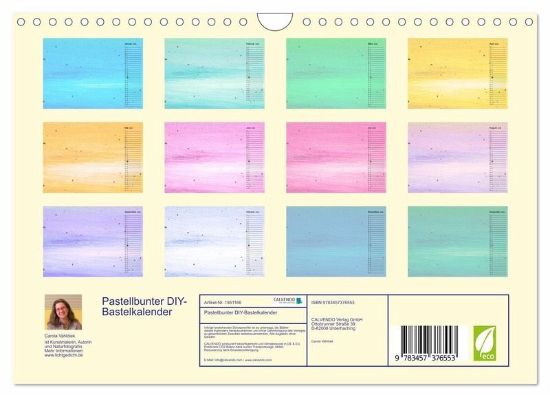 QUALITÄT - Hochwertiger Fotokalender mit 12 wunderschönen Motiven auf lichtbeständigem Bilderdruckpapier, robuste Spiralbindung mit Aufhängebügel.NACHHALTIG - deutliche Abfallreduzierung durch bedarfsgerechte Einzelstückfertigung, umweltfreundliches FSC-zertifiziertes Papier, Produktion in Deutschland, klimabewusste Logistik.PERFEKTES GESCHENK - Kalender für Freunde und Familie, für Kinder und Erwachsene, jung und alt,zu Weihnachten, Geburtstag oder zwischendurch.VIELFALT - Bildkalender in verschiedenen Formaten, z.B. DIN A5, DIN A4, DIN A3 sowie DIN A2. Ob Naturmotiv, Gemälde oder Fotos, ideal für ein persönliches Wohlfühlambiente.Hochwertiger Do-it-yourself-Kalender für Fotos, zum Malen, Basteln und Selbstgestalten - für Kinder und Erwachsene von Autor(in): Carola Vahldiek