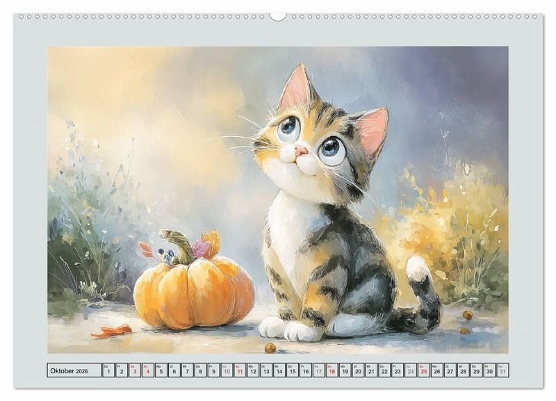 Dieser Kalender zeigt niedliche Kätzchen, die durch alle Jahreszeiten tollen. Jede Illustration wurde in zarten Aquarell-Pastelltönen gestaltet und vermittelt eine ruhige und harmonische Stimmung. Alle Bilder wurden mit der Hilfe von KI erstellt und zeigen verspielte und liebliche Szenen für alle Katzenfreunde und Aquarell-Liebhaber.