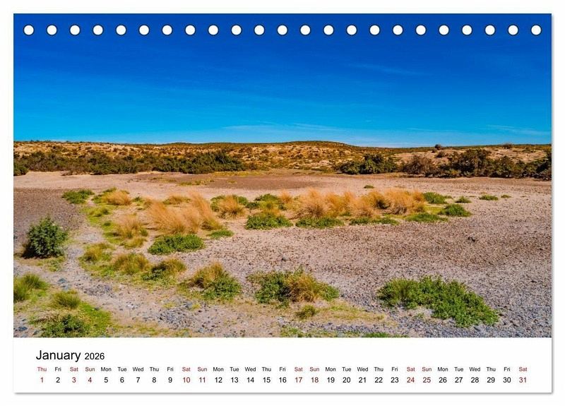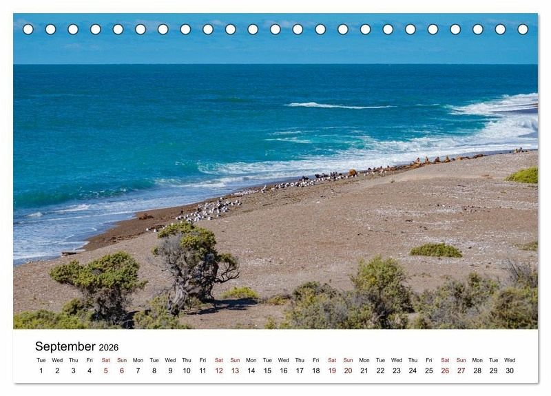 Discover the wild beauty of Argentina's Atlantic coast with this calendar featuring the unique ecosystem of Peninsula Valdés. From vast semi-arid Pampas and volcanic red soil to towering cliffs and crashing tides, this UNESCO World Heritage Site is a haven for marine life. Meet the iconic Magellanic penguins, South American sea lions, and elephant seals in their natural rookeries. Each month reveals the untamed charm of Patagonia-where ocean, land, and wildlife thrive in harmony.