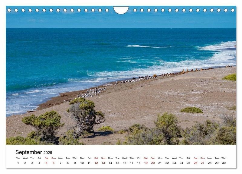 Discover the wild beauty of Argentina's Atlantic coast with this calendar featuring the unique ecosystem of Peninsula Valdés. From vast semi-arid Pampas and volcanic red soil to towering cliffs and crashing tides, this UNESCO World Heritage Site is a haven for marine life. Meet the iconic Magellanic penguins, South American sea lions, and elephant seals in their natural rookeries. Each month reveals the untamed charm of Patagonia-where ocean, land, and wildlife thrive in harmony.