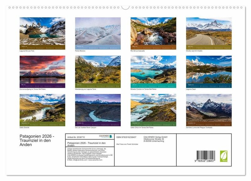 PREMIUM-LINIE - Brillanter Fotokalender mit 12 wunderschönen Motiven, Kunstdruck in Hochglanz in Museumsqualität.QUALITÄT - edle Materialien, stabile Rückwand mit 2 innovativen Einstecktaschen für eine optimale Präsentation an der Wand.NACHHALTIG - deutliche Abfallreduzierung durch bedarfsgerechte Einzelstückfertigung, umweltfreundliches FSC-zertifiziertes Papier, Produktion in Deutschland, klimabewusste Logistik.PERFEKTES GESCHENK - Kalender für Freunde und Familie, für Kinder und Erwachsene, jung und alt, zu Weihnachten, Geburtstag oder zwischendurch.Eine Reise durch das einzigartige Patagonien von Autor(in): Frank Schröder