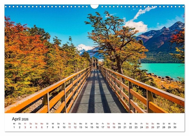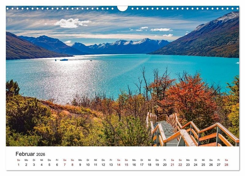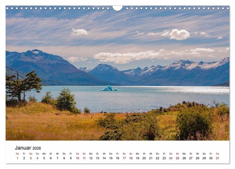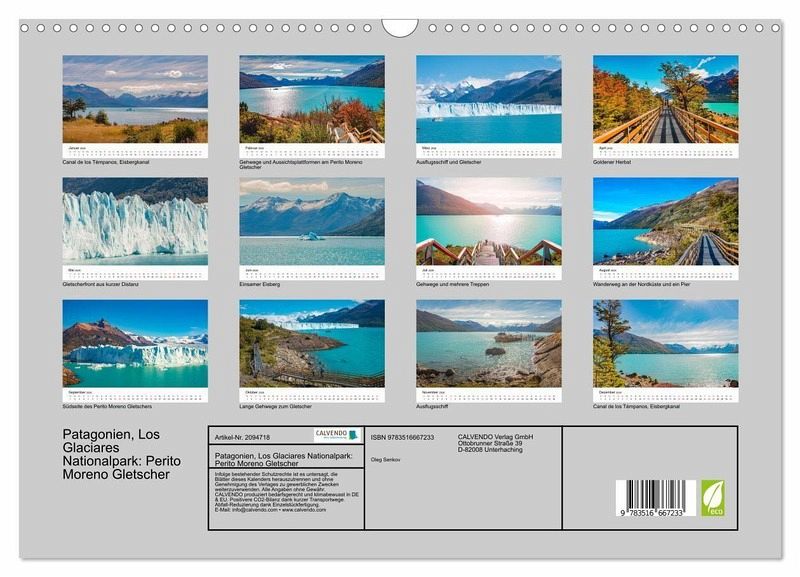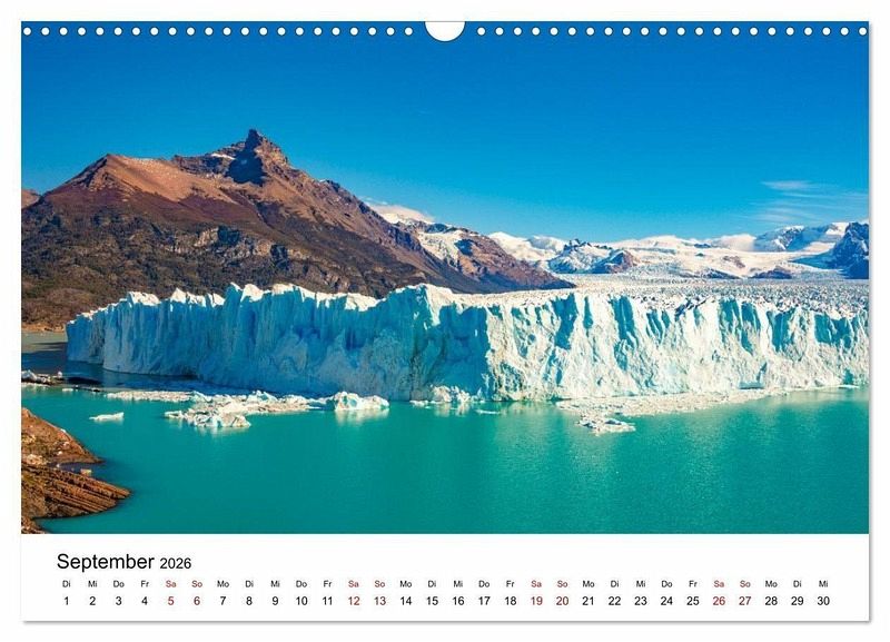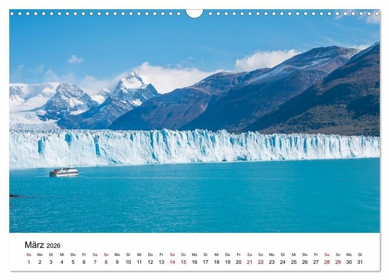 Im Süden Argentiniens erstreckt sich eine der spektakulärsten Landschaften der Welt: der Los Glaciares Nationalpark in Patagonien - ein UNESCO-Weltnaturerbe. Majestätische Eiswände, tiefblaue Gletscher, spiegelnde Seen, einsame Eisberge und eine vielfältige Tierwelt prägen diese Region rund um den berühmten Perito-Moreno-Gletscher. Dieser Kalender fängt die eisige Schönheit und wilde Weite Patagoniens ein - von fliegenden Flamingos bis zu wandernden Besuchern auf den endlosen Stegen entlang der Gletscherkante.