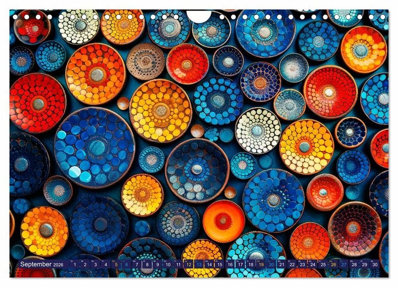 Entdecken Sie diesen einzigartigen Kalender "Patchwork - Farben und Formen"! Jeder Monat bringt ein neues, faszinierendes Design, das Farben und Muster harmonisch vereint. Perfekt für kreative Köpfe und Liebhaber von Kunst und Individualität. Lassen Sie sich inspirieren und verschönern Sie Ihr Jahr mit farbenfrohen Patchwork-Kreationen! Dieser Kalender wurde mit Unterstützung der KI erstellt.