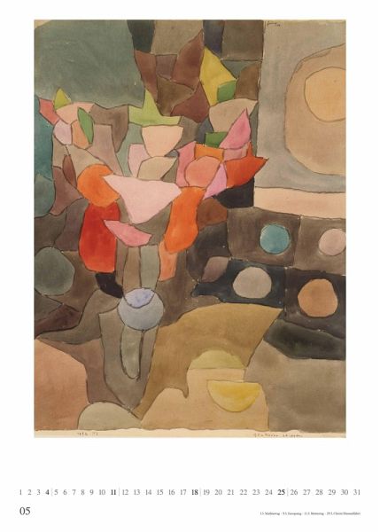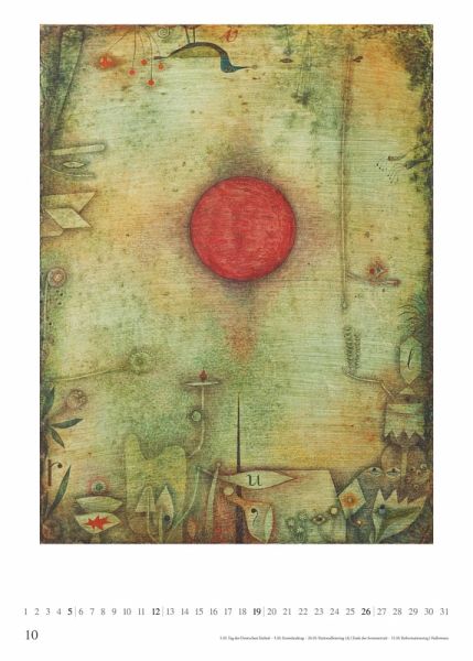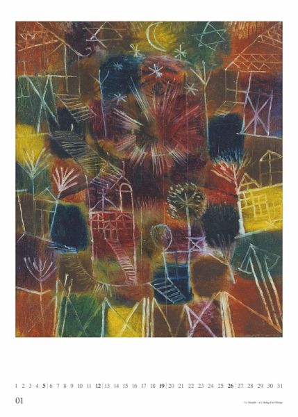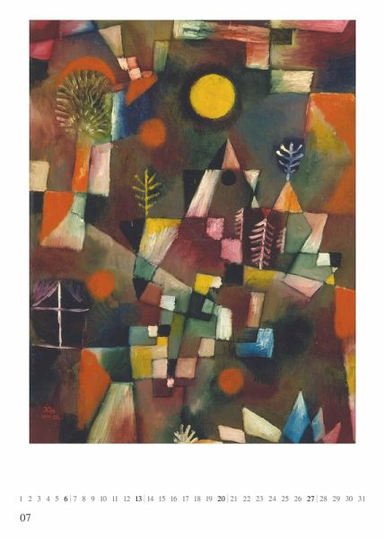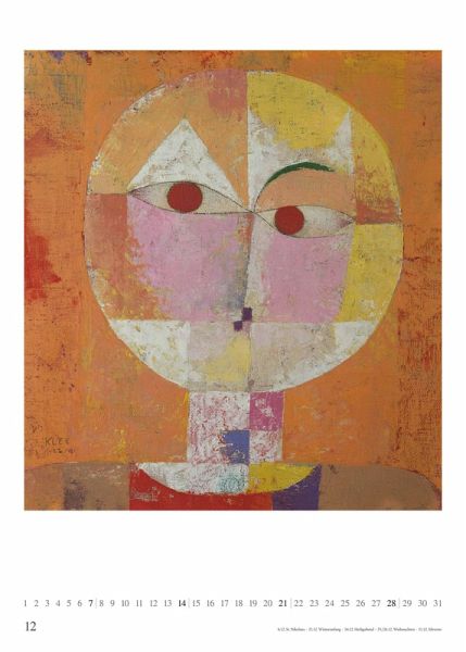 12 ausgewählte Kunstdrucke von Paul Klee Hochwertiger Poster-Kalender im Format 50 x 70 cm Brillanter Bilderdruck mit lackiertem Deckblatt Stabile Spiralbindung mit Aufhänger Internationales Kalendarium mit allen wichtigen deutschen Feiertagen