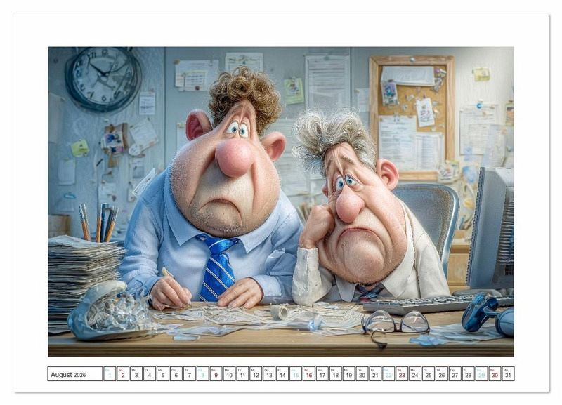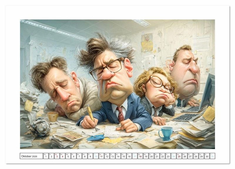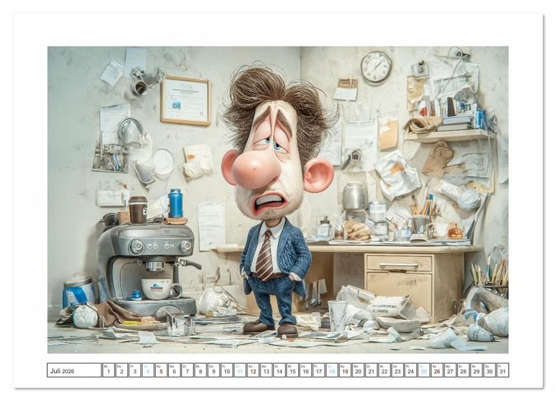 Endlich ein Kalender, das den Büroalltag auf den Punkt bringt! "Pause ist, wenn der Drucker druckt" - die einzig wahre Anleitung zum entspannten Durchatmen zwischen Papierstaus, Kaffeedurst und Meeting-Marathons. Erlebe mit, wie Bürohelden kreative Pausen erfinden, während der Drucker seinen ganz eigenen Rhythmus tanzt. Perfekt für alle, die wissen: Manchmal ist das Warten auf Technik die beste Gelegenheit für einen echten Powernap - oder wenigstens für einen Kaffee mehr. Hol dir das Must-Have für jeden Schreibtisch und bring deine Kollegen zum Lachen! Alle hier gezeigten Bilder wurden mit Sorgfalt, Liebe und mit Hilfe einer KI generiert. Abschließend werden sie mit Bildbearbeitungsprogrammen überarbeitet und in den Kalender eingefügt.