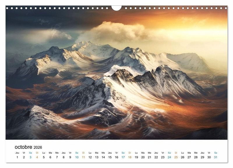 Chaque mois, laissez-vous transporter vers des destinations imaginaires incroyables à travers des paysages à couper le souffle. Des montagnes majestueuses aux sommets enneigés jusqu'aux plages paradisiaques baignées de soleil, chaque page est une véritable invitation à l'évasion. Vous pourrez profiter de scènes inoubliables qui éveilleront vos sens et égayeront votre quotidien.