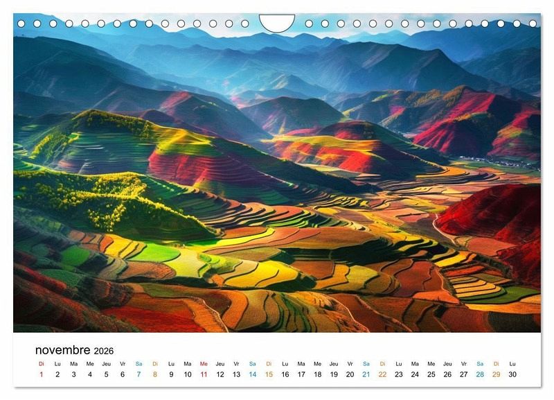Chaque mois, laissez-vous transporter vers des destinations imaginaires incroyables à travers des paysages à couper le souffle. Des montagnes majestueuses aux sommets enneigés jusqu'aux plages paradisiaques baignées de soleil, chaque page est une véritable invitation à l'évasion. Vous pourrez profiter de scènes inoubliables qui éveilleront vos sens et égayeront votre quotidien.
