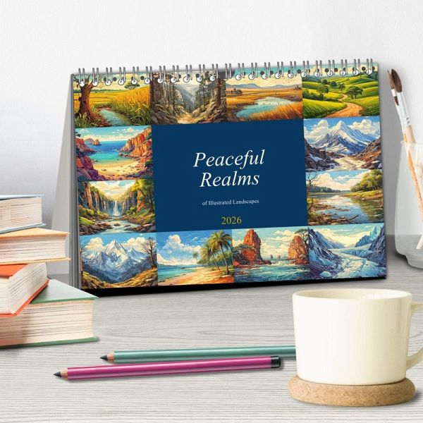 QUALITY - High-quality photo calendar with 12 beautiful images on light-resistant paper, robust spiral binding.SUSTAINABLE - Significant waste reduction due to print-on-demand production, environmentally friendly FSC-certified paper, produced locally, climate-conscious logistical processes.PERFECT GIFT - calendars for friends and family, for children, all ages and all occasions, from Christmas to birthdays and everything in between.LOTS OF CHOICE - Wall calendars in different sizes (DIN A4 and DIN A3), for any topic and personal taste, featuring photography, painting and illustrations.Moments of Peace depicted in Bookish Scenes von Autor(in): Pixbox