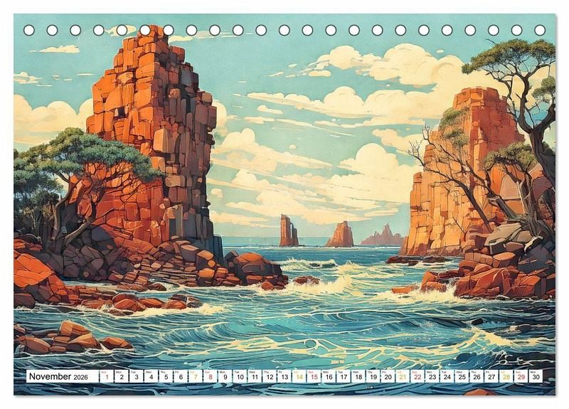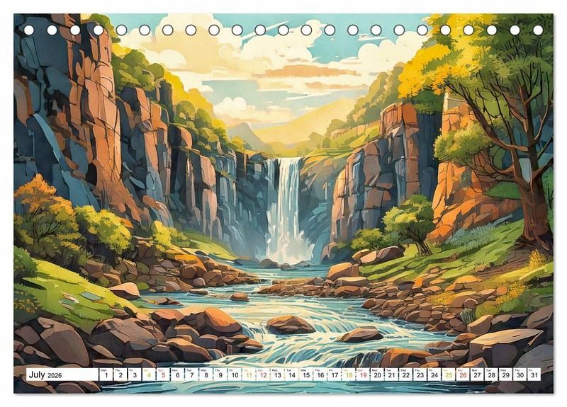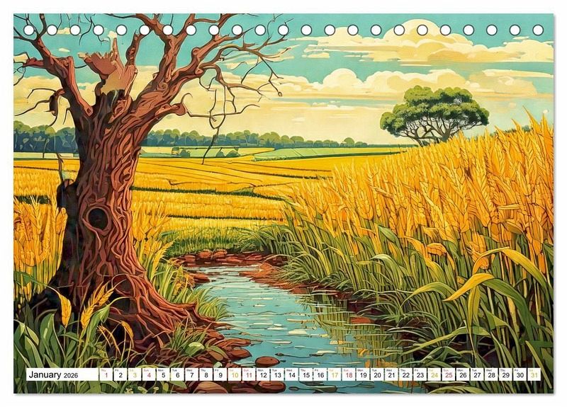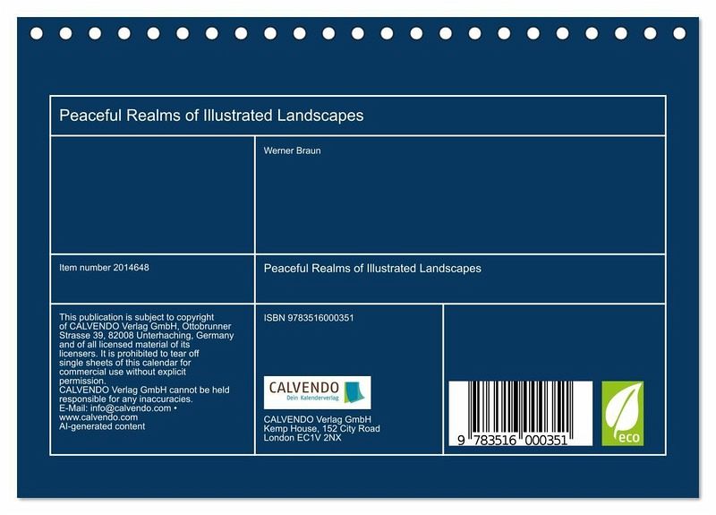 Some adventure books, mostly for young adults, were often illustrated with paintings that convincingly depicted objects, yet were clearly not photographs. This form of illustration, which is rarely found today, is the focus of the images in this calendar. It takes us around the world to fascinating places that don't exist in any specific location, but could exist anywhere. Let yourself be enchanted anew each month by a virtual dream destination. The images are crafted by artificial intelligence.