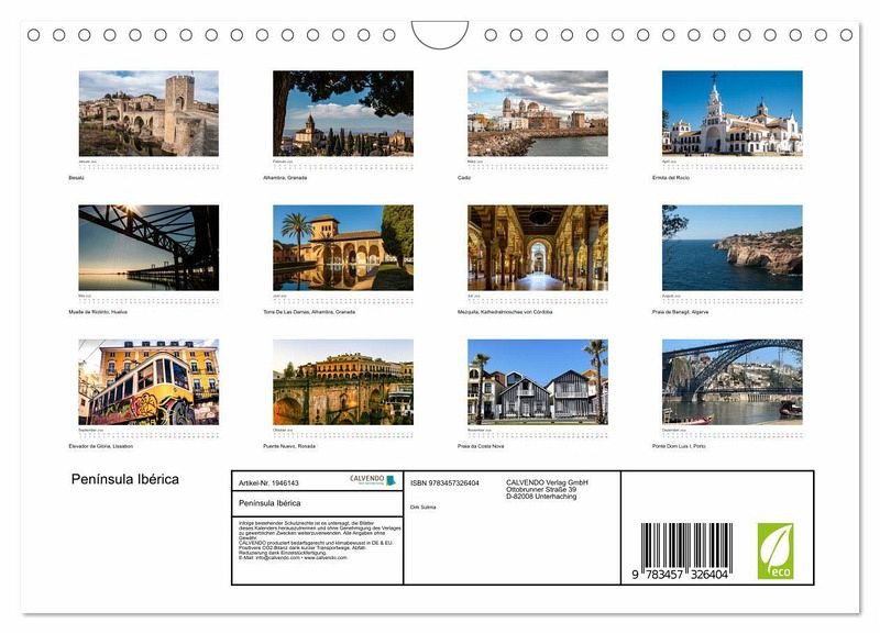 QUALITÄT - Hochwertiger Fotokalender mit 12 wunderschönen Motiven auf lichtbeständigem Bilderdruckpapier, robuste Spiralbindung mit Aufhängebügel.NACHHALTIG - deutliche Abfallreduzierung durch bedarfsgerechte Einzelstückfertigung, umweltfreundliches FSC-zertifiziertes Papier, Produktion in Deutschland, klimabewusste Logistik.PERFEKTES GESCHENK - Kalender für Freunde und Familie, für Kinder und Erwachsene, jung und alt, zu Weihnachten, Geburtstag oder zwischendurch.VIELFALT - Bildkalender in verschiedenen Formaten, z.B. DIN A5, DIN A4, DIN A3 sowie DIN A2. Ob Naturmotiv, Gemälde oder Fotos, ideal für ein persönliches Wohlfühlambiente.Mit dem Wohnmobil durch Spanien und Portugal - eine Rundreise von Autor(in): Dirk Sulima