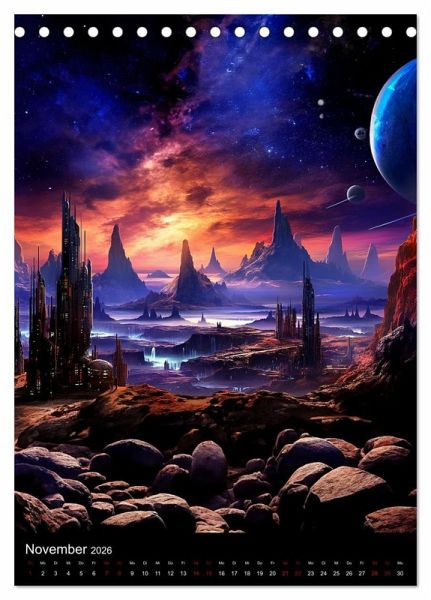 Der "Galaktische Reisekalender" ist ein atemberaubender Wandkalender, der Ihnen die faszinierende Schönheit des Universums näherbringt. Dieser einzigartige Kalender präsentiert Ihnen zwölf Monate lang fremde Planeten und Raumstationen, die zum träumen einladen.