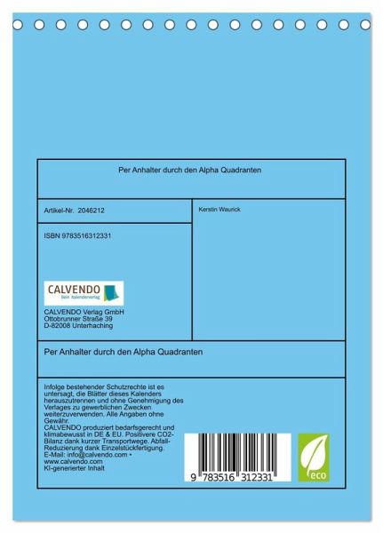 QUALITÄT - Hochwertiger Fotokalender mit 12 wunderschönen Motiven auf lichtbeständigem Bilderdruckpapier, robuste Spiralbindung.NACHHALTIG - deutliche Abfallreduzierung durch bedarfsgerechte Einzelstückfertigung, umweltfreundliches FSC-zertifiziertes Papier, Produktion in Deutschland, klimabewusste Logistik.PERFEKTES GESCHENK - Kalender für Freunde und Familie, für Kinder und Erwachsene, jung und alt, zu Weihnachten, Geburtstag oder zwischendurch.VIELFALT - Bildkalender in verschiedenen Formaten, z.B. DIN A5, DIN A4, DIN A3 sowie DIN A2. Ob Naturmotiv, Gemälde oder Fotos, ideal für ein persönliches Wohlfühlambiente.Eine Abenteuerreise durch die Galaxis von Autor(in): Kerstin Waurick
