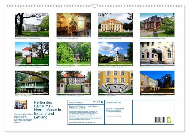 QUALITÄT - Hochwertiger Fotokalender mit 12 wunderschönen Motiven auf lichtbeständigem Bilderdruckpapier, robuste Spiralbindung mit Aufhängebügel.NACHHALTIG - deutliche Abfallreduzierung durch bedarfsgerechte Einzelstückfertigung, umweltfreundliches FSC-zertifiziertes Papier, Produktion in Deutschland, klimabewusste Logistik.PERFEKTES GESCHENK - Kalender für Freunde und Familie, für Kinder und Erwachsene, jung und alt, zu Weihnachten, Geburtstag oder zwischendurch.VIELFALT - Bildkalender in verschiedenen Formaten, z.B. DIN A5, DIN A4, DIN A3 sowie DIN A2. Ob Naturmotiv, Gemälde oder Fotos, ideal für ein persönliches Wohlfühlambiente.Ehemalige Gutshäuser in den baltischen Staaten von Autor(in): Henning von Loewis of Menar