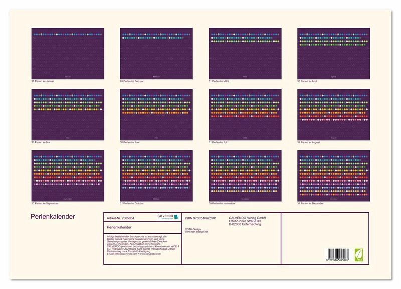 Jeder Tag im Jahr ist wertvoll. Das bringt dieser einzigartige Kalender zum Ausdruck. Auch optisch ist er ein echter Blickfang und kann zum festen Einrichtungsgegenstand werden. Denn dieser ästhetische Perlenkalender wird Jahr für Jahr aktualisiert. Auch ist er eine tolle Geschenkidee für z. B. den Wohnungseinzug, zu Weihnachten oder zum Geburtstag um das Jahresende herum. Die Perlen für Mittwoch, Samstag und Sonntag heben sich von den anderen Perlen zur Orientierung ab. Auch in französisch erhältlich: "Une perle pour chaque jour".