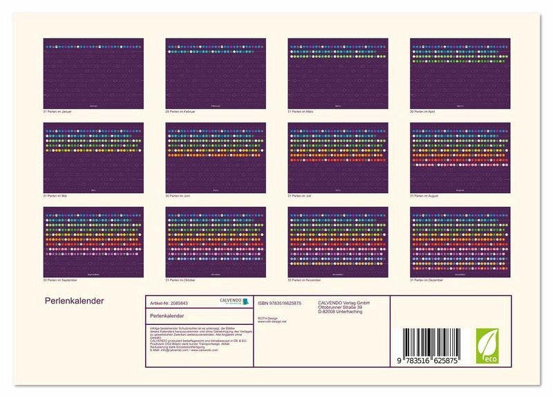 Jeder Tag im Jahr ist wertvoll. Das bringt dieser einzigartige Kalender zum Ausdruck. Auch optisch ist er ein echter Blickfang und kann zum festen Einrichtungsgegenstand werden. Denn dieser ästhetische Perlenkalender wird Jahr für Jahr aktualisiert. Auch ist er eine tolle Geschenkidee für z. B. den Wohnungseinzug, zu Weihnachten oder zum Geburtstag um das Jahresende herum. Die Perlen für Mittwoch, Samstag und Sonntag heben sich von den anderen Perlen zur Orientierung ab. Auch in französisch erhältlich: "Une perle pour chaque jour".