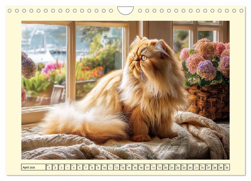 Dieser exklusive Fotokalender feiert die besondere Ausstrahlung und Anmut der Perserkatze - eine der edelsten und ruhigsten Katzenrassen der Welt. Mit der Hilfe von KI wurden liebliche Bilder gestaltet, die die Schönheit, Ruhe und Eleganz dieser Tiere perfekt in Szene setzen. Die Kombination aus farbenfrohen Blumen und stilvoller Umgebung unterstreicht den majestätischen Charakter der Perserkatzen. Ein toller Kalender für alle Menschen, die sich für Katzen und die zeitlose Noblesse dieser faszinierenden Rasse begeistern.