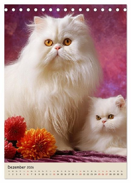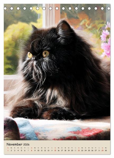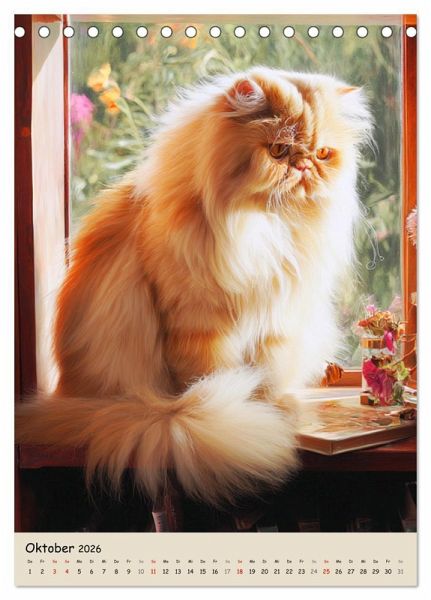 In diesem Kalender begegnen wir der Perserkatze in ihrer vollendeten Pracht - anmutig, sanft und stets stilvoll. Mit ihrem langen, seidigen Fell und dem ruhigen Wesen verkörpert sie pure Eleganz und zeitlose Schönheit. Jedes Bild wurde mit Hilfe von KI erstellt und zeigt sie in harmonischer Umgebung zwischen Blüten und Pflanzen. Diese Illustrationen laden dazu ein, die Welt der Perserkatze neu zu entdecken - voller Ruhe, Luxus und natürlicher Grazie.
